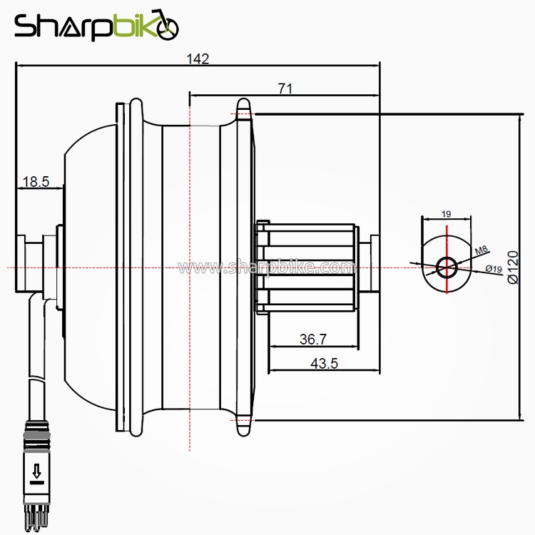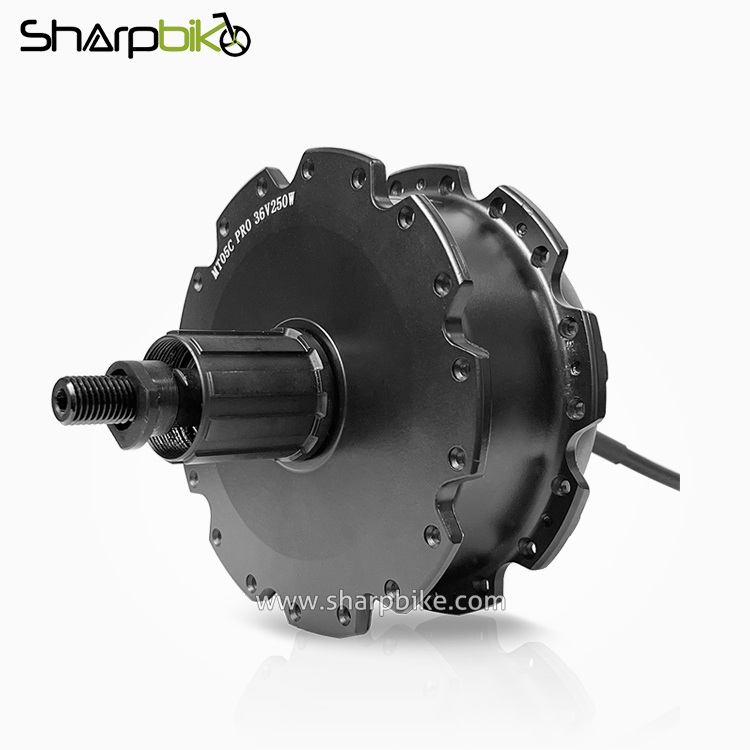 MT05C PRO rear drive motor is a compact and lightweight thru-axle gear-drive motor designed for modern road bikes. It supports both 36V and 48V systems with power options of 250W and 350W. With a 1:4.4 reduction ratio, the motor delivers a maximum torque of 39 Nm. at 36V, providing strong and efficient performance for daily commuting or long-distance riding.